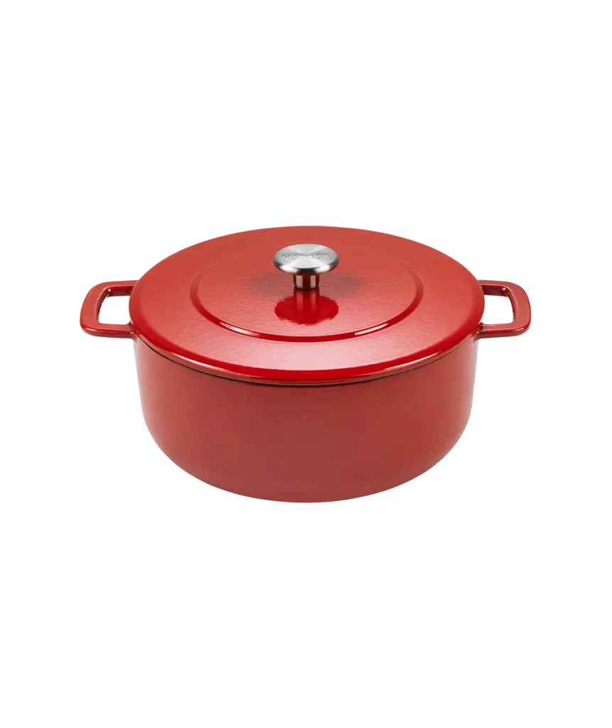 Our iconic 24cm Red Dutch Oven is built to last a lifetime. Made from 100% recycled cast iron and coated with a strong enamel layer – no seasoning needed. Perfect for slow-cooking, braising or even baking till 260ºC. With a 3,8L capacity, this size easily serves 4 to 6 people. Suitable for all heat sources, including induction. The hollow stainless steel knob stays cool to the touch. Available in bold colours and multiple sizes.