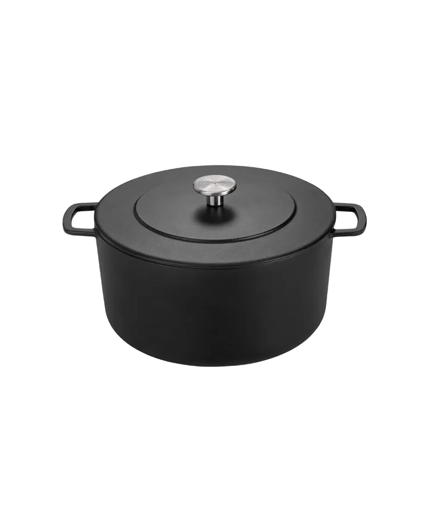 Our iconic 32cm Black Dutch Oven is built to last a lifetime. Made from 100% recycled cast iron and coated with a strong enamel layer – no seasoning needed. Perfect for slow-cooking, braising or roasting large meals. With a 12L capacity, this size easily serves 8 to 10 people. Suitable for all heat sources, including induction. The hollow stainless steel knob stays cool to the touch. Available in bold colours and multiple sizes.
