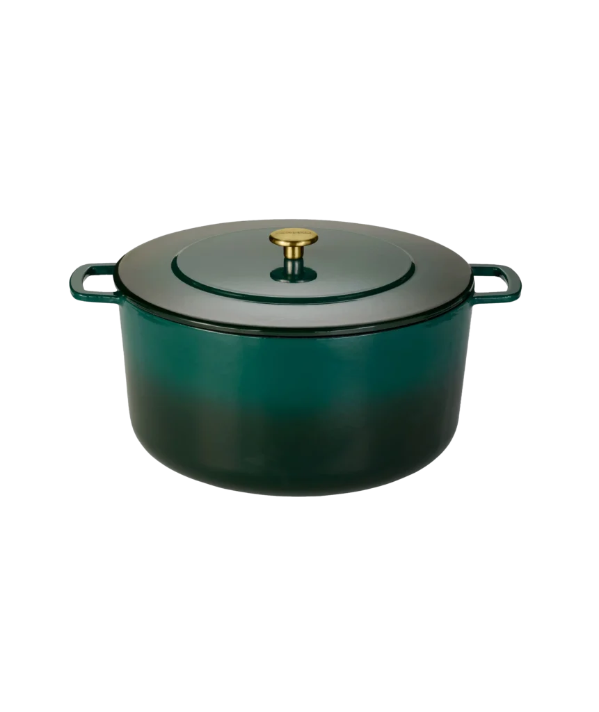 Our iconic 32cm Dutch Oven is built to last a lifetime. Made from 100% recycled cast iron and coated with a strong enamel layer – no seasoning needed. Perfect for slow-cooking, braising or roasting large meals. With a 12L capacity, this size easily serves 8 to 10 people. Suitable for all heat sources, including induction. The hollow stainless steel knob stays cool to the touch. Available in bold colours and multiple sizes.