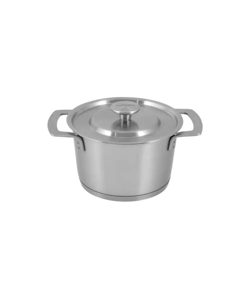 Premium 16cm Stainless Steel Cooking pan, crafted from 100% recycled stainless steel with a 4.5mm thick base for optimal heat distribution. Lightweight yet durable, with a 1.7L capacity – perfect for everyday cooking such as boiling eggs . Suitable for all heat sources, including induction and oven use. PFAS-free, dishwasher safe. Lid included